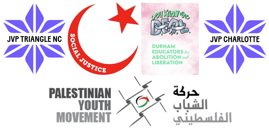 A coalition including Jewish Voice for Peace -Triangle NC, PalYouth NC, Muslims for Social Justice, Durham Educators for Abolition and Liberation, Jewish Voice for Peace – Charlotte, and employees of the State of North Carolina.